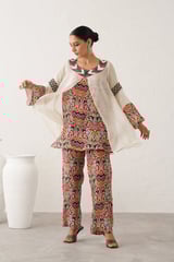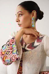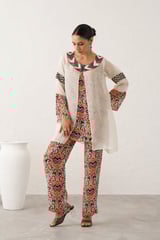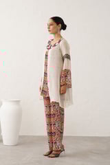 Off-White Organza Cape 3-Piece Printed Co-ord Set