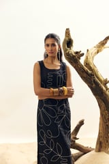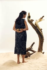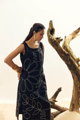 Black Linen Sleeveless Scoop Neck Midi Shift Dress