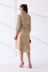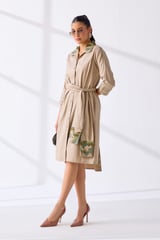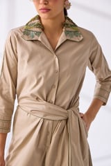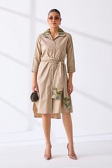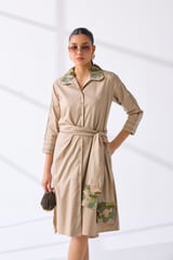 Ecru Cotton Poplin Shirt Dress with 3D Embroidery