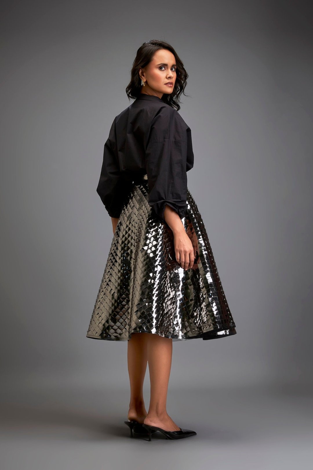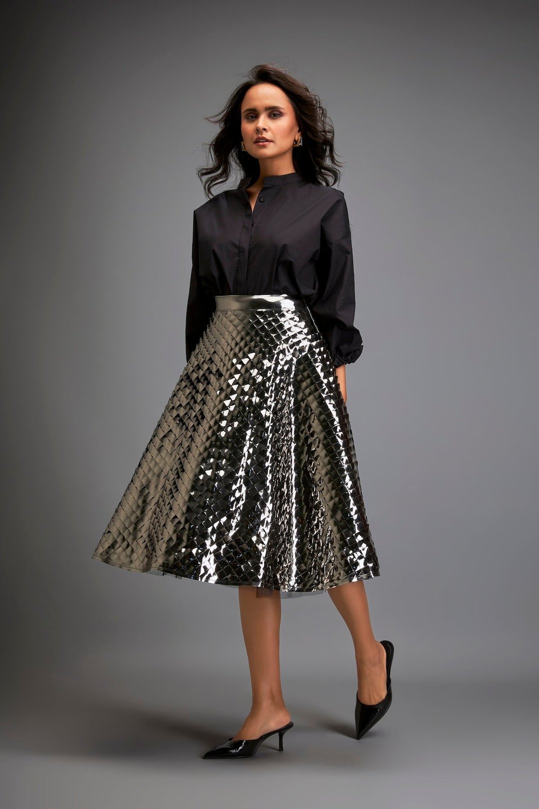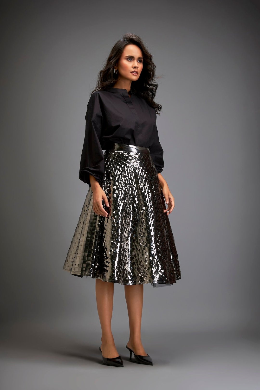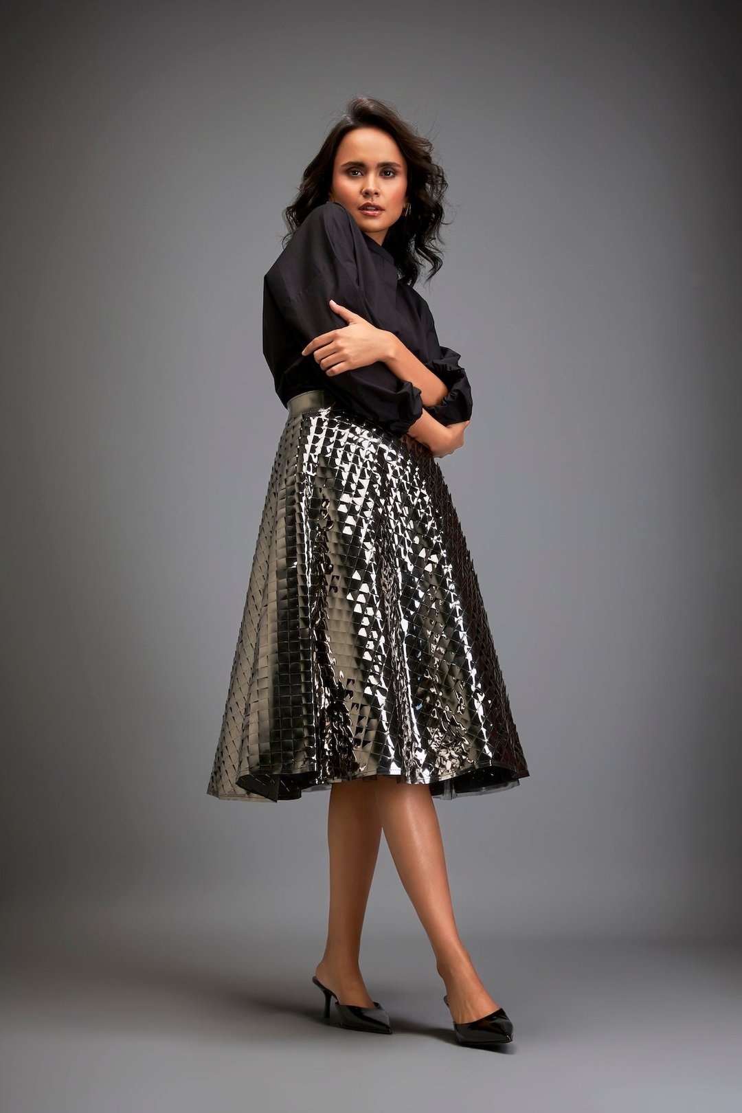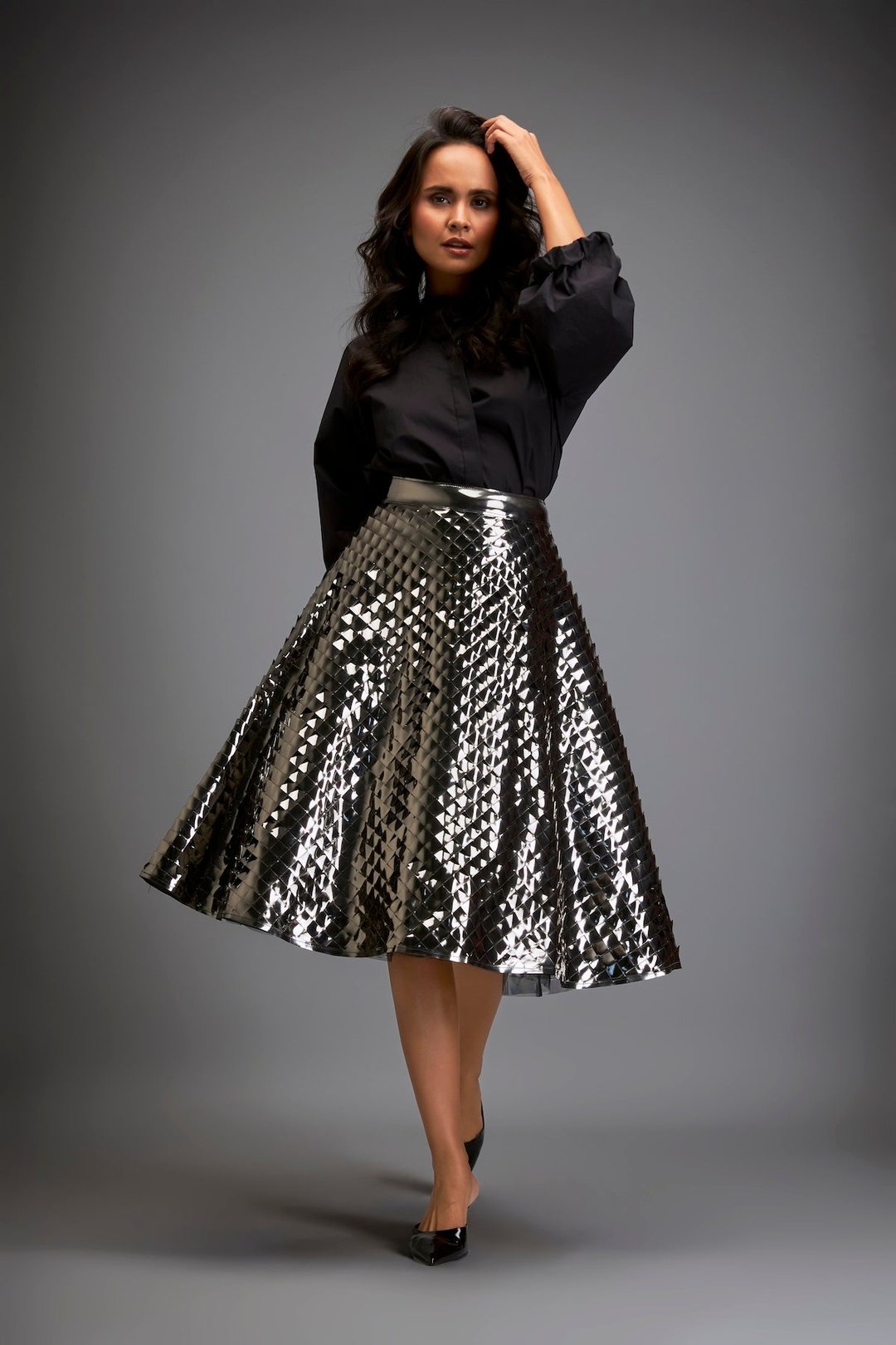 Gun Metal Coloured Metallic 3-D Textured A-Line Skirt