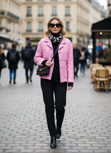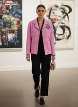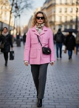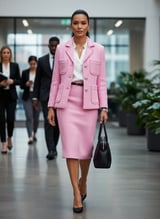 Pink Bouclé Tailored Jacket with Pearl Gem Buttons