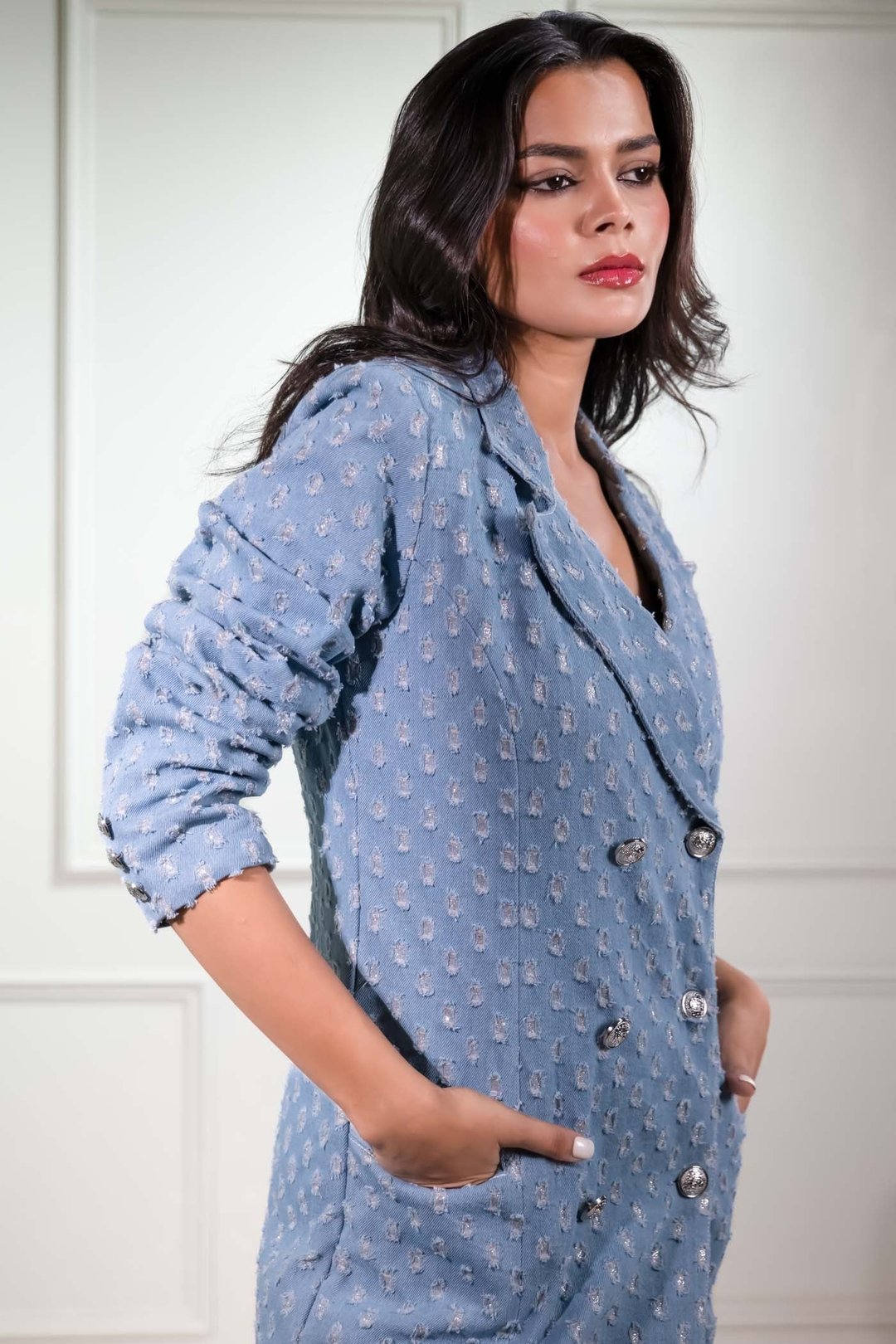 Blue Tweed Blazer Dress