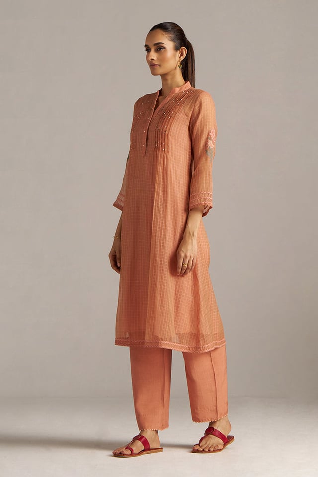 Canyon Clay Woven Chanderi Checks Co-Ord Set