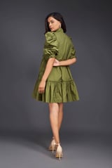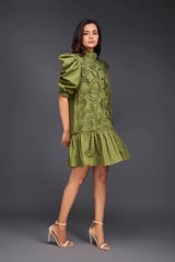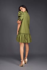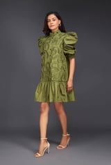 DRESS WITH GATHERED BOTTOM & PLEATED FRILL DETAILING ALL OVER FRONT