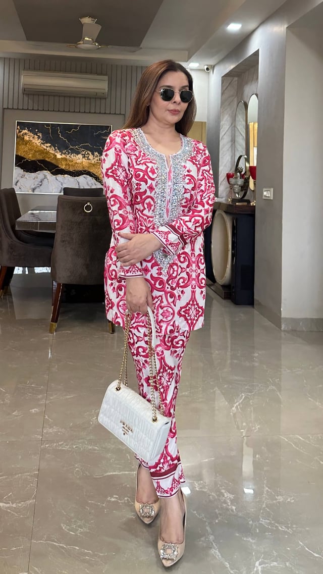 Hot Pink Capri Hand Embroidered Crystal Co-Ord