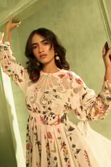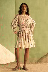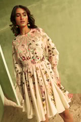 Off-White Floral Cutwork Fit and Flare Mini Dress