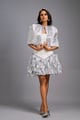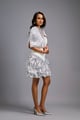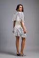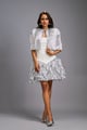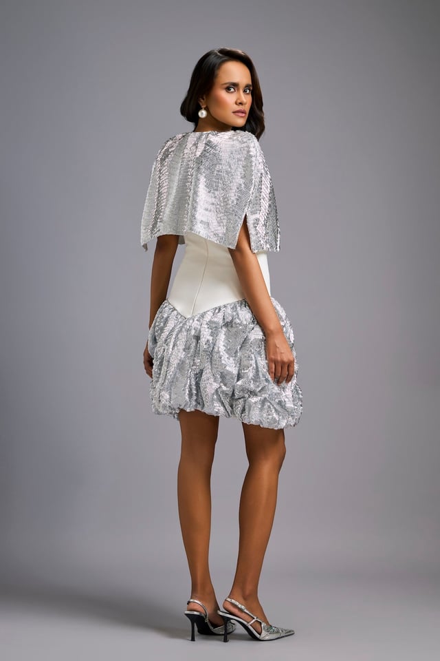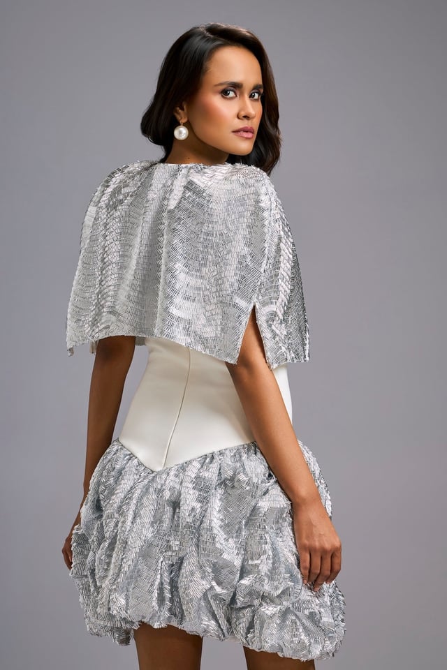 Strapless White Dress with Voluminous Shimmer Skirt & Cape