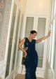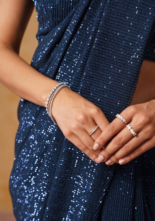 Sequin Pre-Draped Saree (Midnight Blue)
