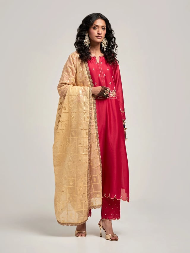Zari Motifs Dupatta with Lace