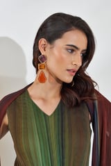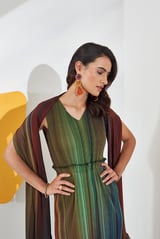 Green Ombre Pleated Maxi Dress with Cape