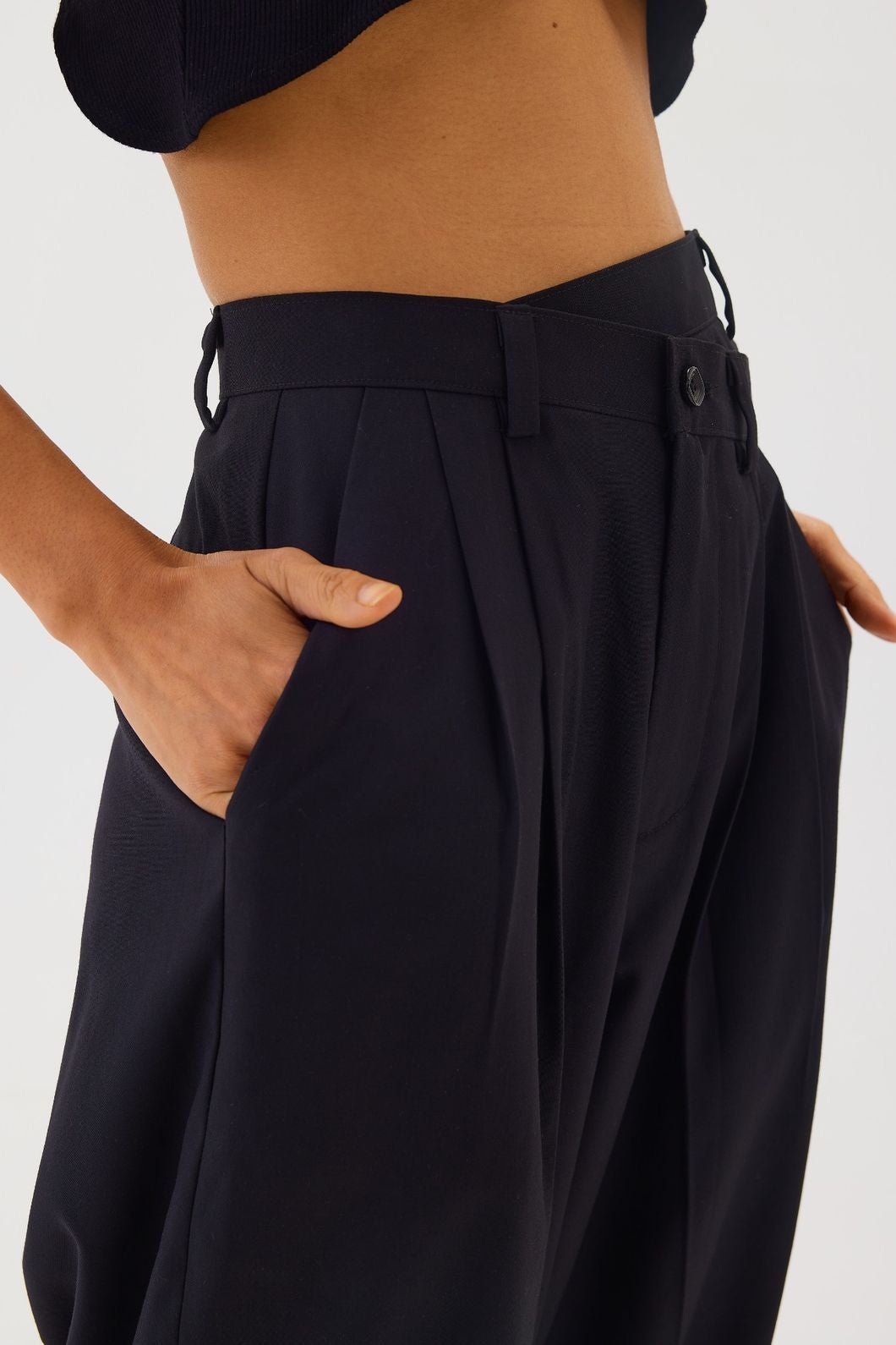 High Waisted Pleated Pants | Black