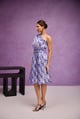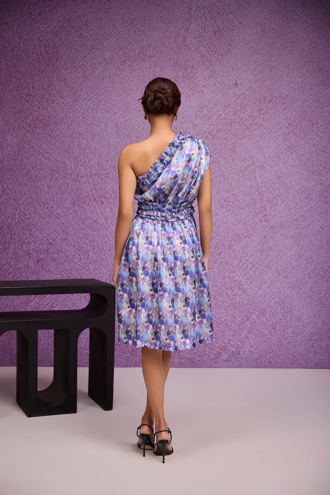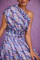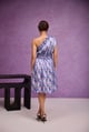 Blue Aquarelle Print Silk Organza One Shoulder Dress