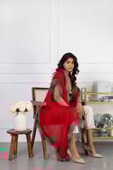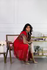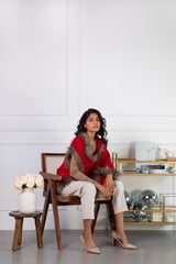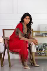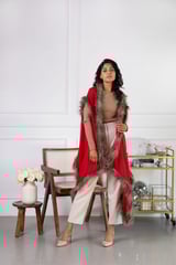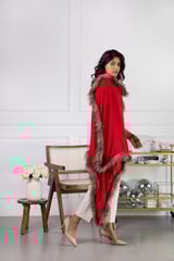 Red Wool Cape with Faux Fur Trim