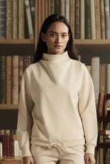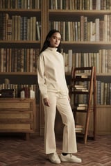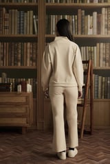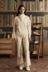 Buttermilk Ponte High Neck Co-ord Set with Wide-Leg Pants
