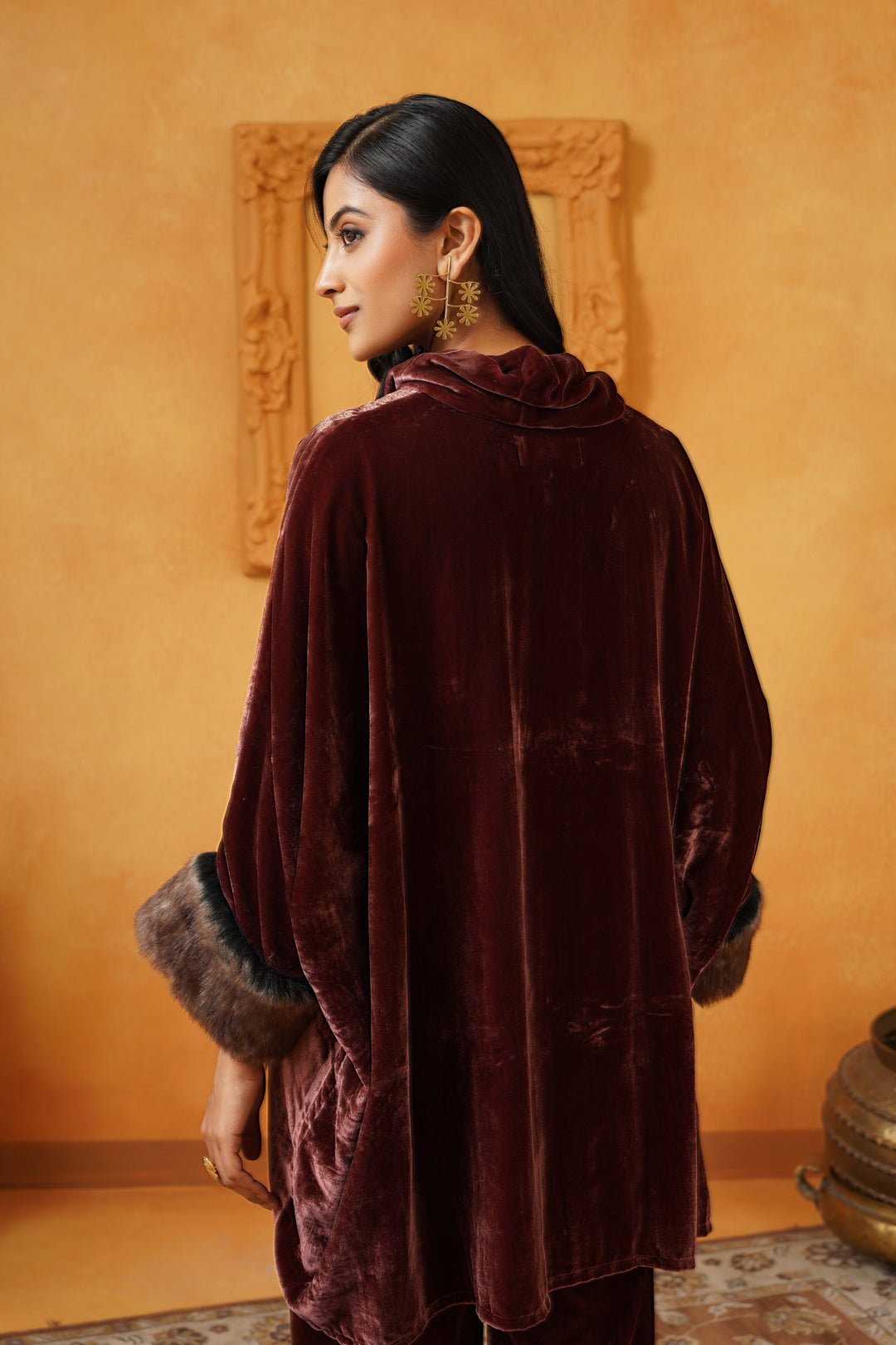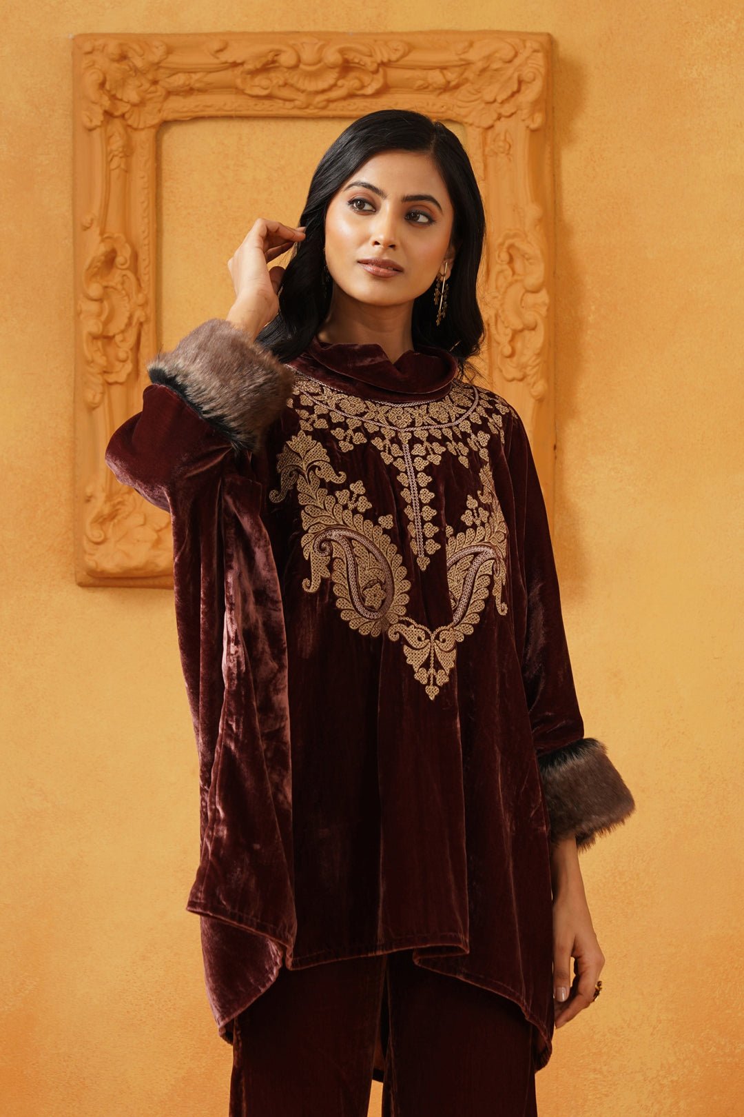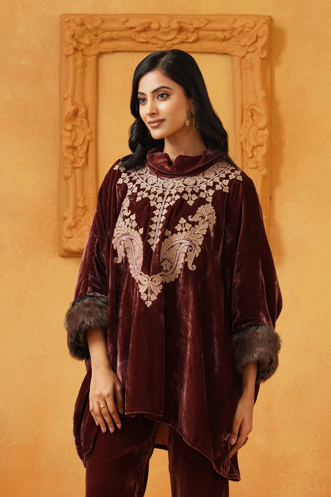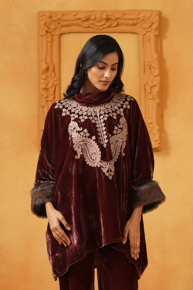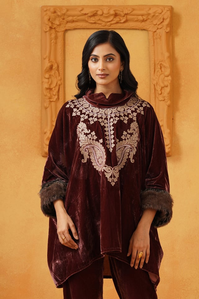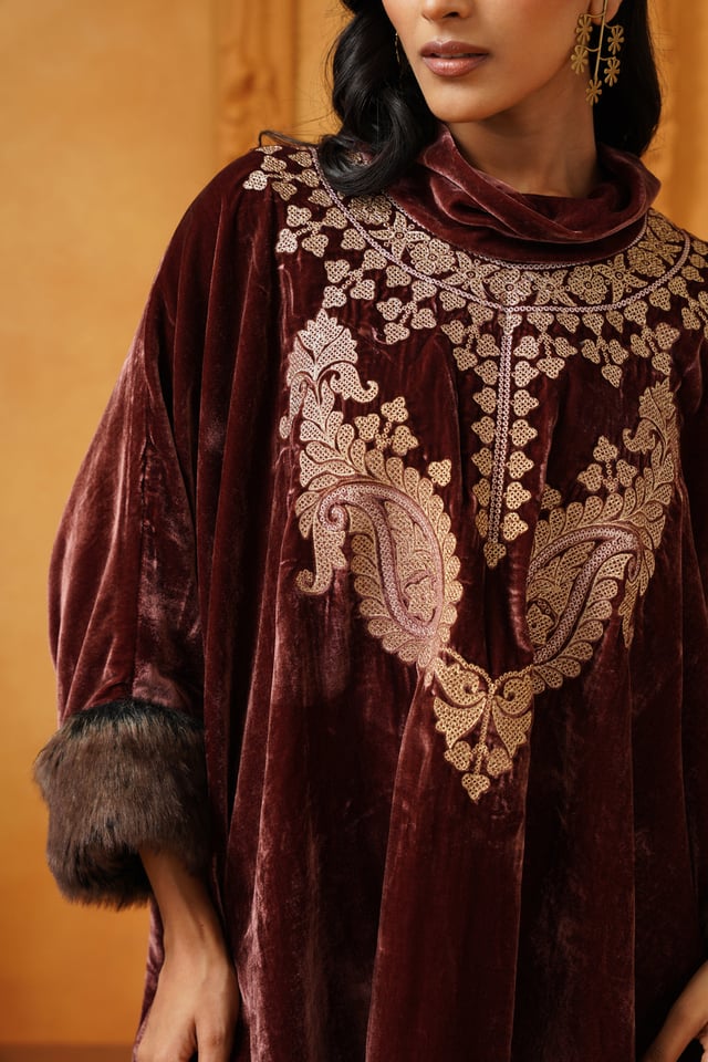 Aqsa Embroidered Velvet Poncho