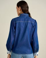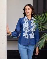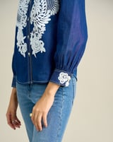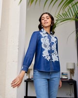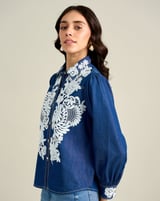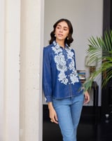 Blue Tencel Lace Appliqué Button-Down Shirt