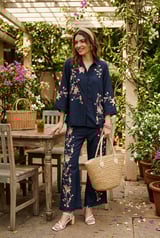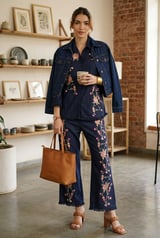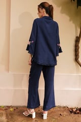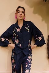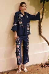 Deep Blue Embroidered Shirt and Pants Co-ord Set