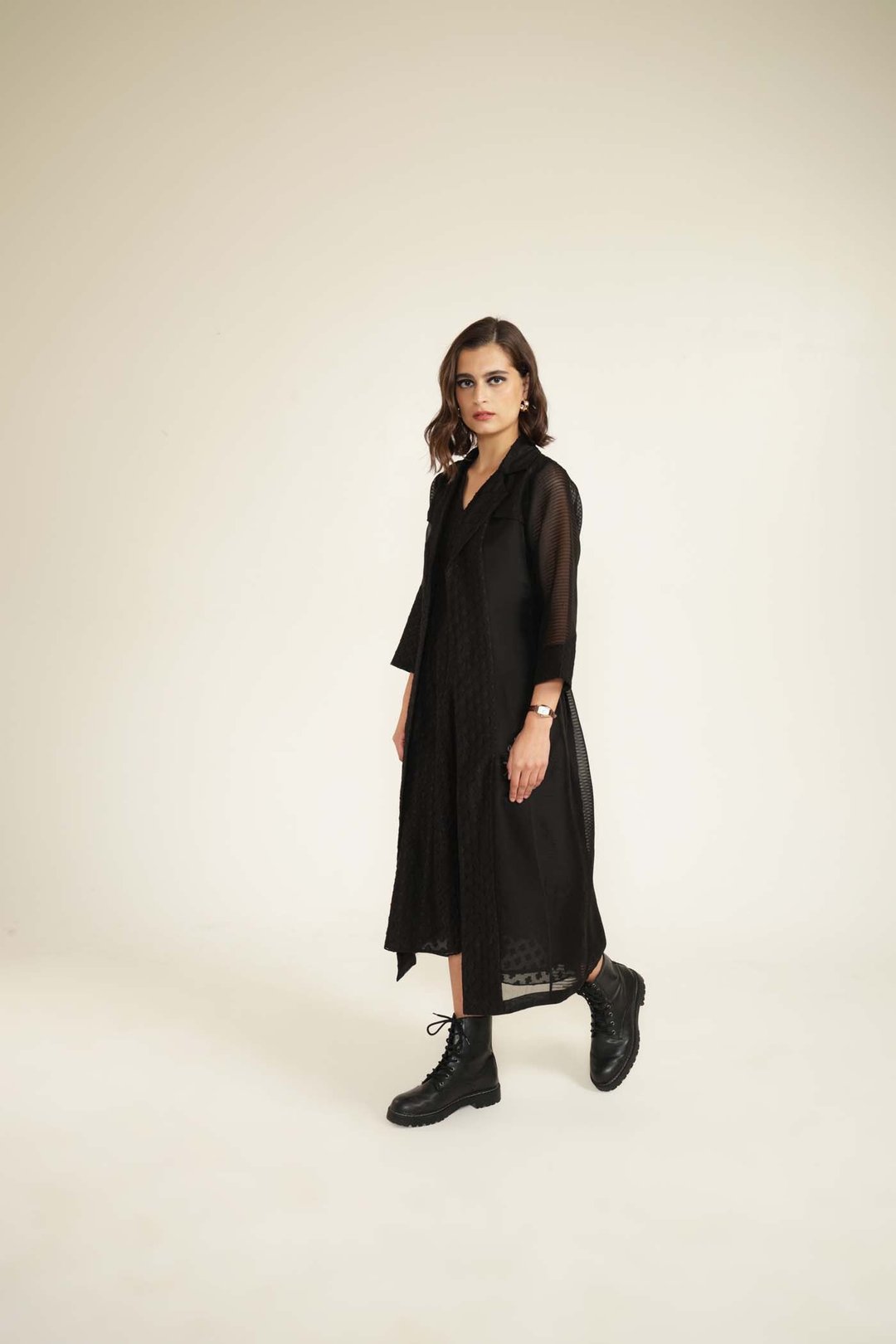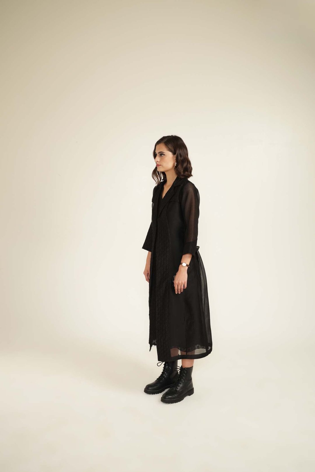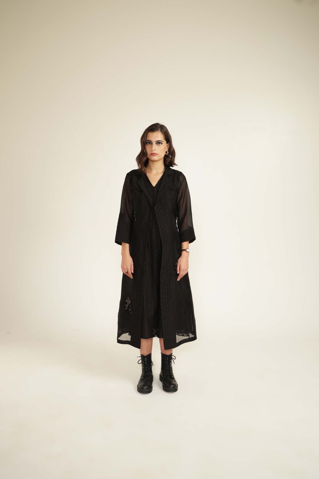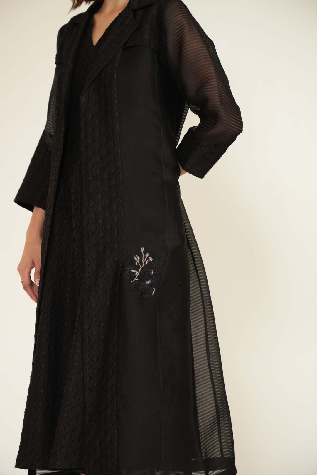 Embroided Organza Jacket with Plain Brocade Dress