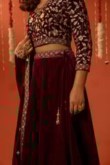 THUMRI - Velvet Maroon Lehenga Set