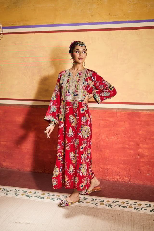 Elizey Paisley Embroidered Kaftan