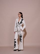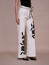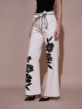 White Wide-Leg Embroidered Trousers