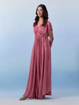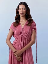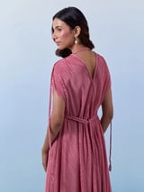 Dark Pink Pleated Maxi Gown with Braided Tie Belt