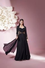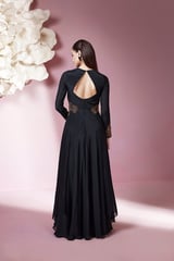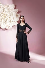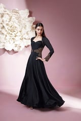 Jet Black Chiffon Maxi Gown with Halter Sweetheart Neck