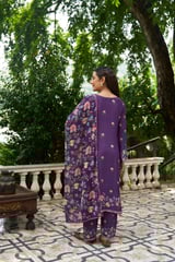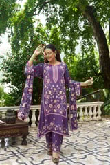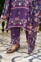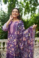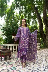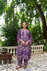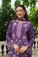 Purple Floral Printed Straight Kurta Set with Dupatta