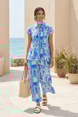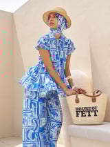 Cobalt Blue Postage Print Peplum Top and Pants Co-ord Set