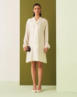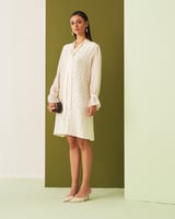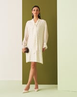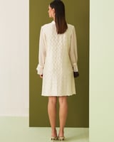 White Textured Tie-Neck Straight Knee-Length Dress