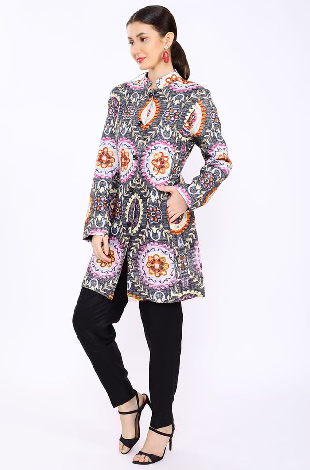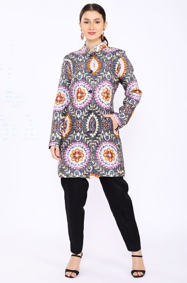 Circle Flower Digital Print Twill Lounge Jacket