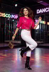 Raspberry Pink Backless Rhinestone Floral T-Shirt
