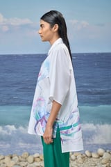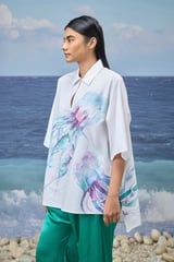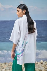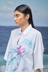 White Premium Giza Cotton Printed Oversized Shirt