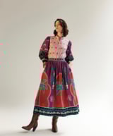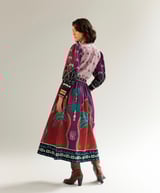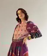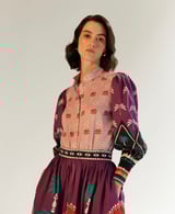 Purple and Pink Printed Mandarin Collar Midi Jumpsuit