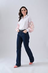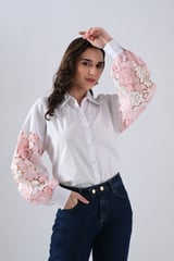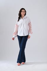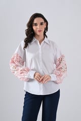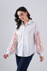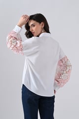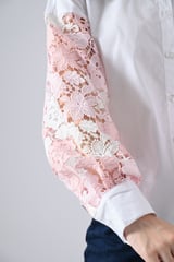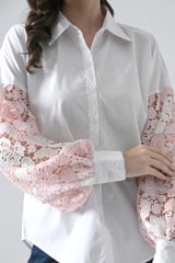 Cotton Shirt With Pink Lace Sleeves