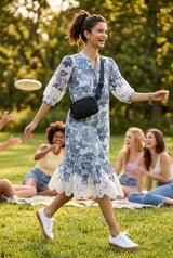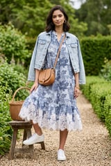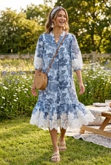 Blue Multi Floral Button-Down Tiered Midi Dress