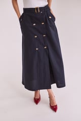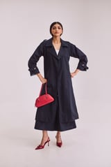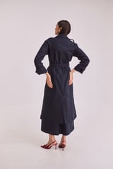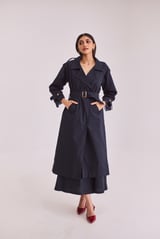 Navy Blue Trench Coat & Skirt Set