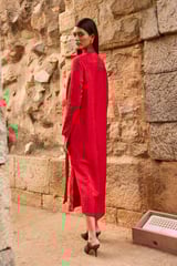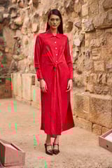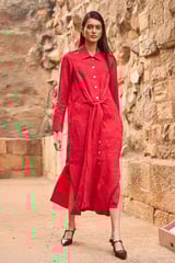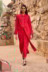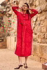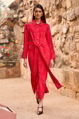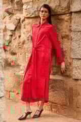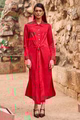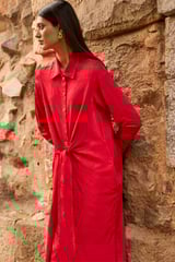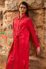 Red Jacquard Shirt Dress