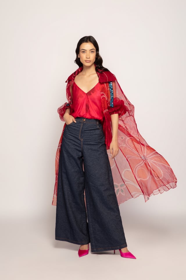 Marigold Bandhani Print Collared Cape Pink Orange