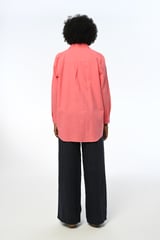 Peach Linen Longline Sequin-Embellished Shirt