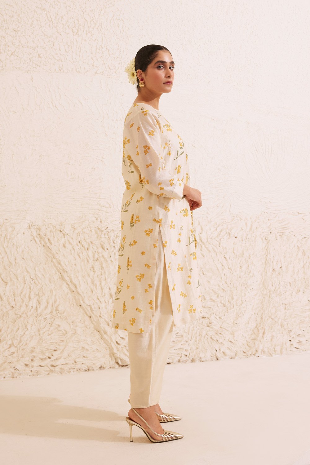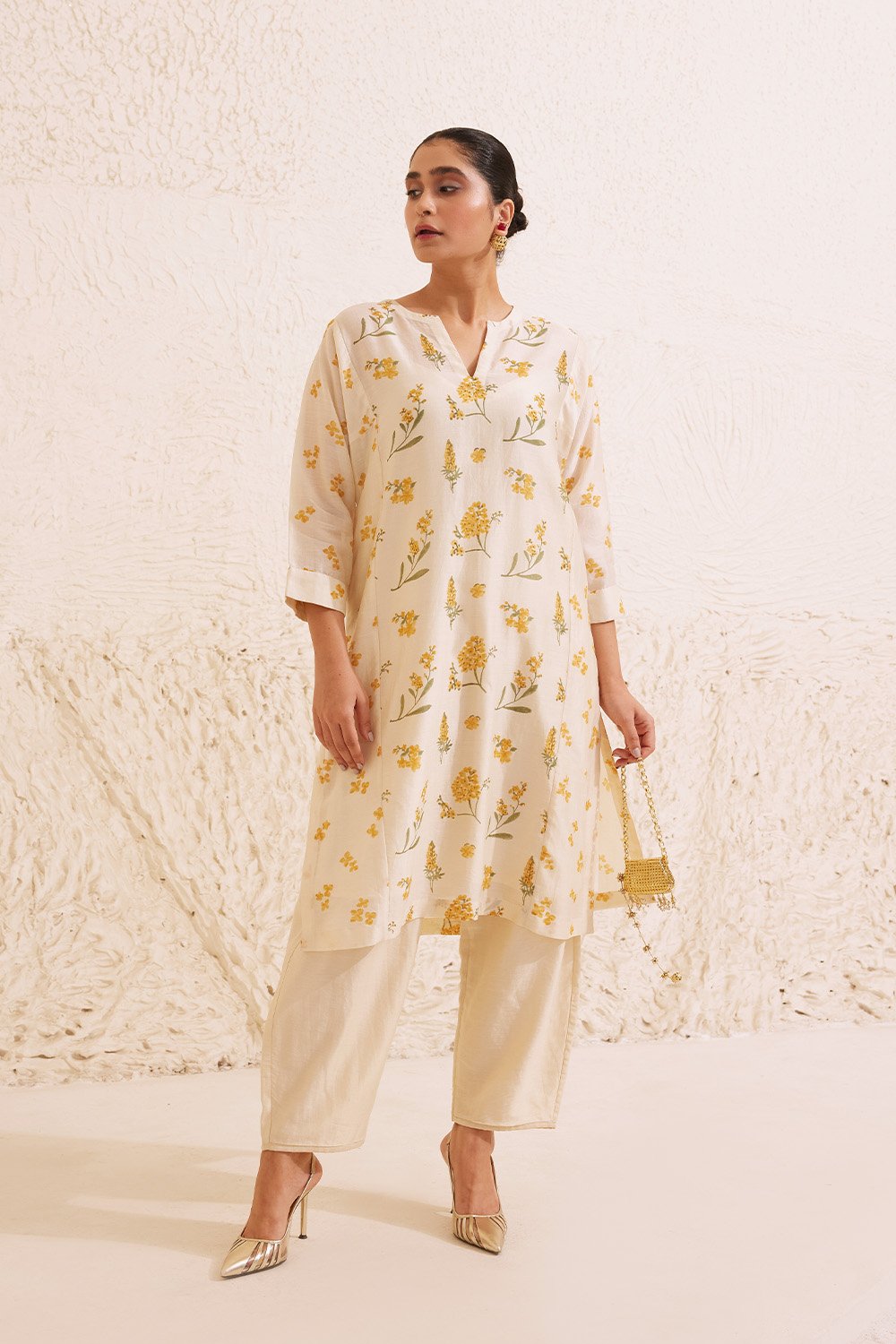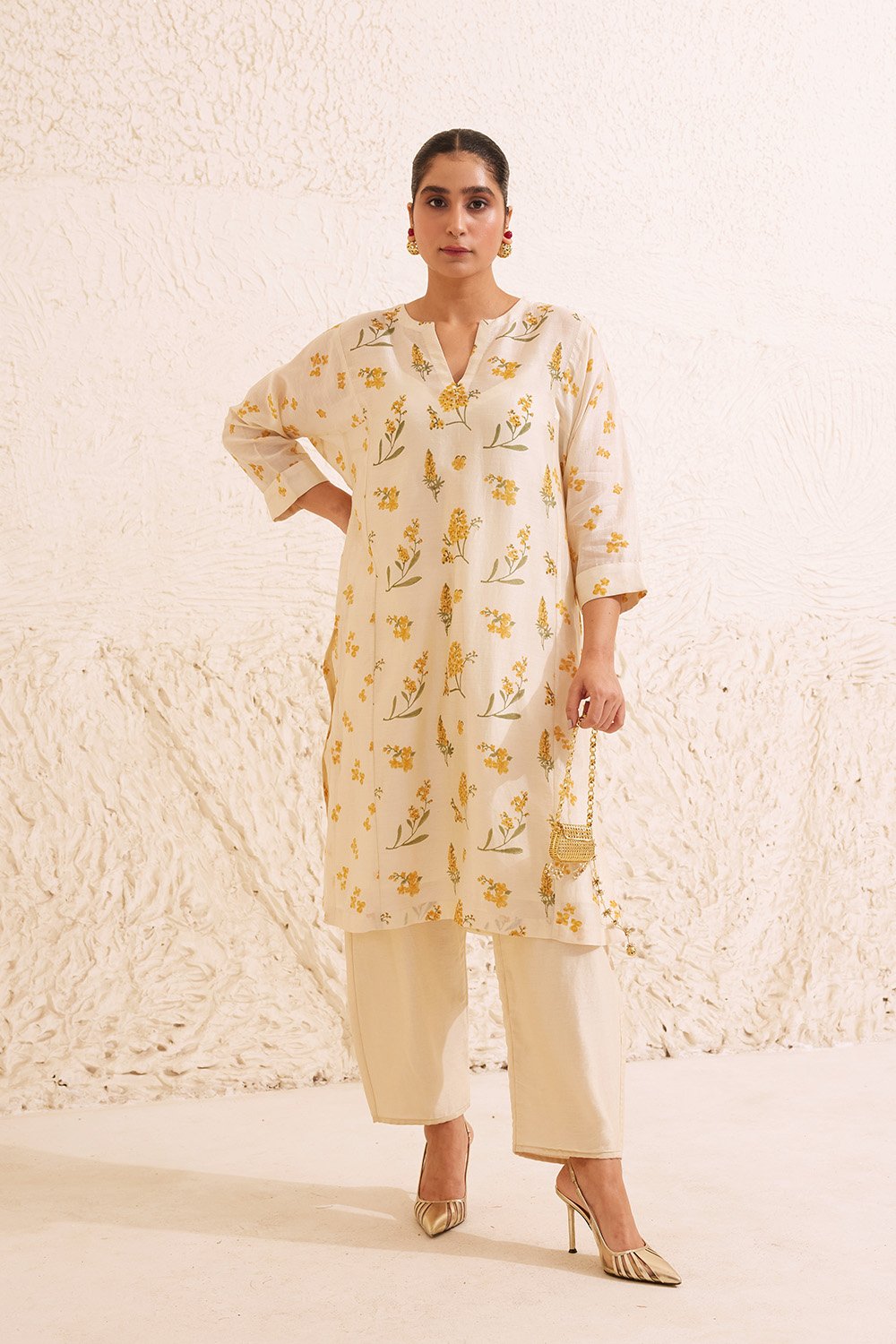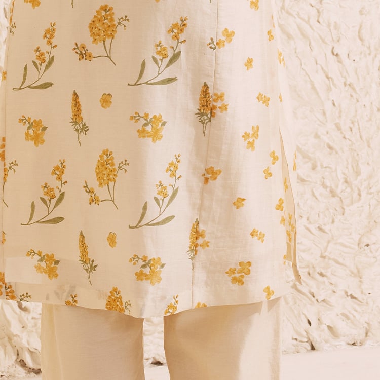 Ivory Chanderi Hand Block Floral Kurta Set.
