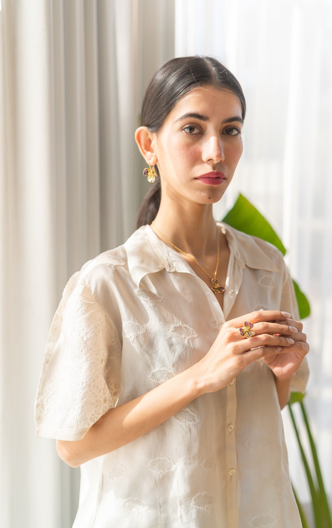 Tiny Fiore Earrings - Amethyst