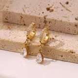 Demi Fine White Zircon Water Droplet Huggie Drop Earrings, Aiden