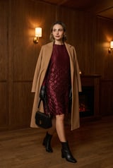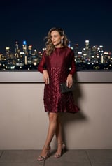 Maroon Textured Shift Knee-Length Dress with Full Sleeves