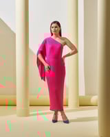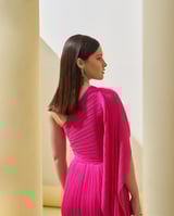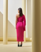 Fuchsia One-Shoulder Pleated Maxi Dress with Drape Panel