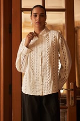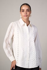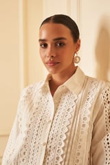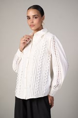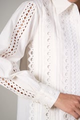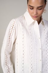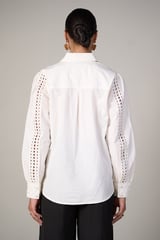 White Cutwork Lace-Detail Button-Down Shirt
