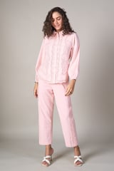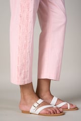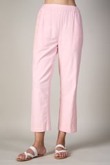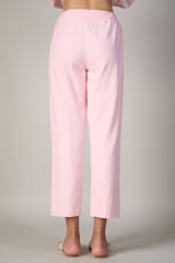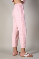 Pastel Pink Straight-Leg Cotton Pants with Lace Panels
