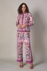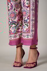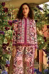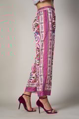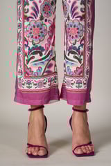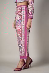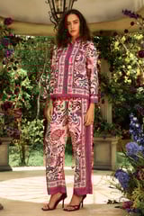 White Watercolor Print Straight-Leg Trousers